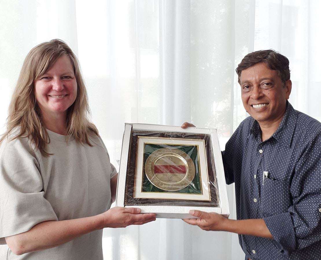 I juli måned mødtes sekretariatsleder Karen Binger Holm med en repræsentant fra den indiske bløderforening (HFI) for at modtage en særlig pris på vegne af tidligere formand for Danmarks Bløderforening Terkel Andersen. Den indiske forening har valgt at tildele Terkel Andersen en ærespris som tak for det store udviklingsarbejde, Danmarks Bløderforening iværksatte i Indien i 1990’erne.
